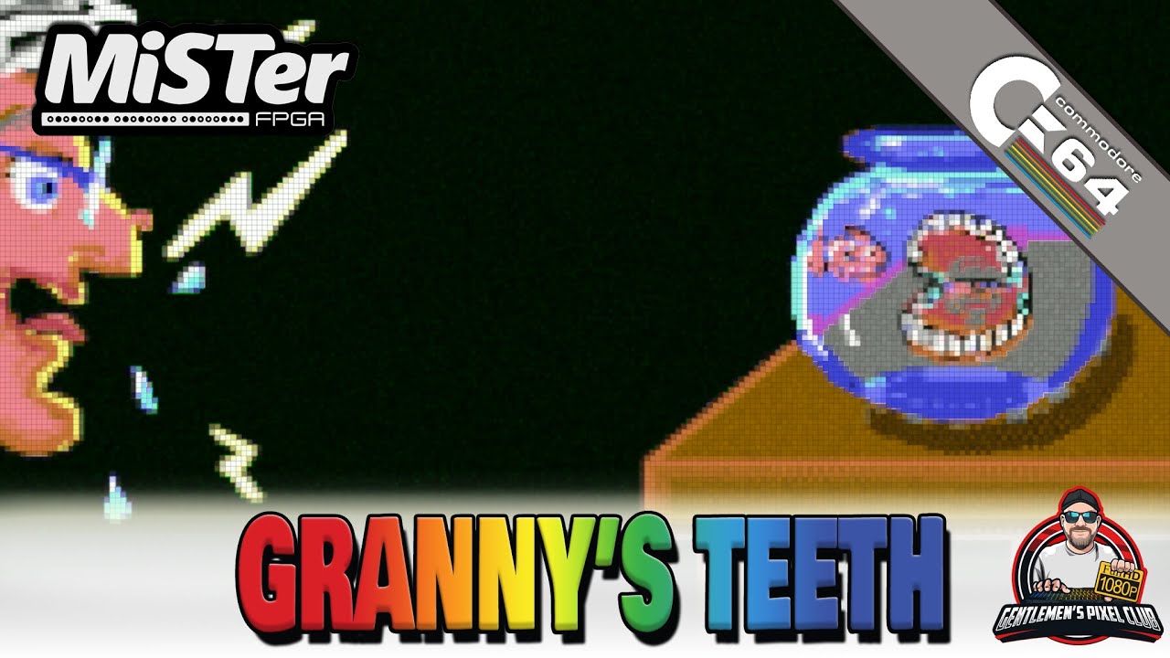 Voici *Granny’s Teeth* sorti en *2020* joué sur le *Commodore 64* recréé sur un *MiSTer FPGA*cœur.