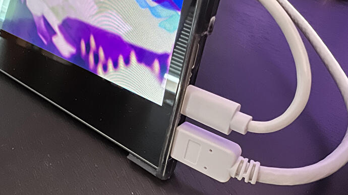Une fois que vous l’avez allumé, vous avez la possibilité d’entrer via USB-C ou mini-HDMI – tous les câbles nécessaires sont inclus ainsi qu’une alimentation. L’alimentation est également un sujet intéressant, car la luminosité maximale de l’écran est déterminée par votre source d’alimentation. Vous pouvez brancher le 15K1F sur n’importe quel port USB-C et il devrait s’allumer, mais la luminosité du moniteur dépend de la puissance que le port peut fournir. Les consoles de jeu modernes fournissent une puissance suffisante pour une expérience raisonnable : brancher le 15K1F sur l’un des ports USB d’une Xbox Series S, par exemple, suffit à faire fonctionner le moniteur à un niveau jouable mais moins lumineux.